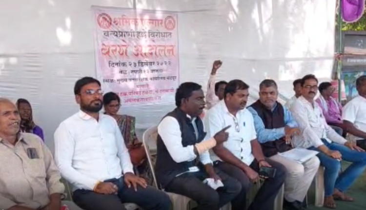 चंद्रपुरात मुख्य वनसंरक्षक कार्यालयासमोर श्रमिक एल्गार संघटनेने केले आंदोलन