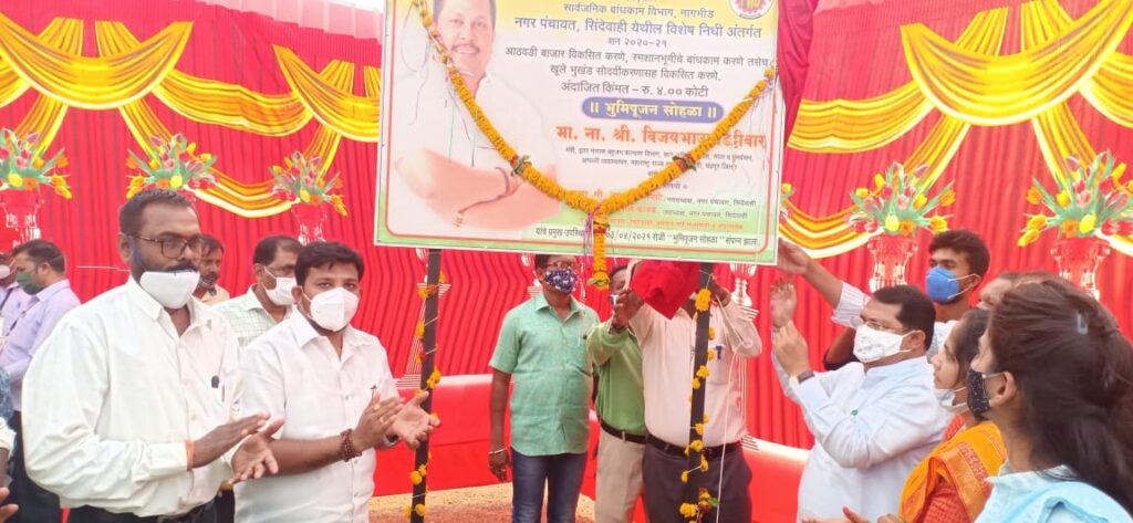 नगरपंचायत सिंदेवाहीच्या वतीने बांधण्यात येणाऱ्या बाजार ओट्याचे बांधकाम, स्मशानभूमीचे बांधकाम व खुले भुखंड सौंदर्यीकरण कामांचे भूमिपूजन आज पालकमंत्री विजय वडेट्टीवार यांच्या हस्ते करण्यात आले. यावेळी ते बोलत होते. याप्रसंगी सिंदेवाहीच्या नगराध्यक्षा आशा गंडाटे, उपाध्यक्ष स्वप्नील कावळे, जिल्हा बँकेचे अध्यक्ष संतोष रावत, मुख्याधिकारी सुप्रिया राठोड, सरपंच रूपाली रत्नावार, नगरसेवक भुपेश लाडे इ. प्रामुख्याने उपस्थित होते.