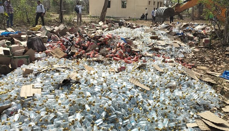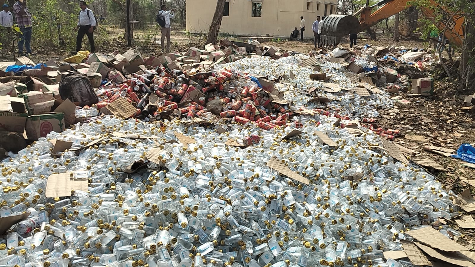 पोलीस आणि राज्य उत्पादन शुल्क विभागाच्या संयुक्त उपस्थितीत ही प्रक्रिया पार पडली. यावेळी जेसीबीच्या सहाय्याने मोठा खड्डा तयार करून जप्त केलेल्या दारूच्या काचेच्या व प्लास्टिकच्या बाटल्या रोड रोलरने चिरडण्यात आल्या. त्यानंतर हा चुरा खड्ड्यात टाकून पुन्हा जागा समतल करण्यात आली. संपूर्ण प्रक्रियेदरम्यान पर्यावरणाला कोणतीही हानी होणार नाही, याची दक्षता घेण्यात आली.