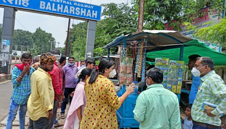चंद्रपूर, दि. 4 ऑगस्ट :- जिल्हा शल्य चिकित्सक डॉ. निवृत्ती राठोड यांच्या मार्गदर्शनाखाली राष्ट्रीय तंबाखू नियंत्रण कार्यक्रम राबविण्यात येत आहे. या अंतर्गत बल्लारपूर येथे जिल्हा सामान्य रुग्णालय अन्न व औषधी प्रशासन व पोलिसांच्या उपस्थितीत बल्लारपूर शहरातील बस स्टेशन, रेल्वे स्टेशन, गांधी चौक, ग्रामीण रुग्णालय, पोलिस स्टेशन परिसरातील 22 पान टपरीवर धाड टाकून कोटपा कायदा 2003 अंतर्गत कारवाई करण्यात आली.
