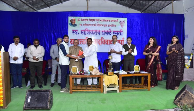 अमरावती : श्री शिवाजी शिक्षण संस्था, अमरावती चे डॉ. पंजाबराव देशमुख विधी महाविद्यालय अमरावती व स्व. माणिकराव घवळे प्रतिष्ठान यांच्या संयुक्त विद्यमाने सदर विधी महाविद्यालयात आंतर महाविद्यालयीन राज्यस्तरीय वादविवाद स्पर्धा 2025 (वर्ष23 वे ) आयोजित करण्यात आली होती.
