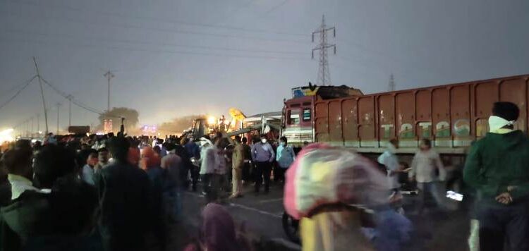 भीषण अपघात! ट्रॅव्हलबस व ट्रकची जोरदार धडक; दोन्ही चालकांचा जागीच मृत्यू तर प्रवासी गंभीर जखमी