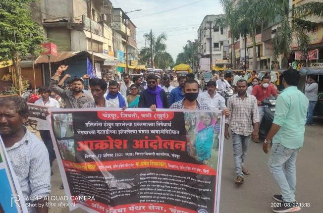 - सर्व आरोपींना तात्काळ अटक करावी, पीडितांना कायमस्वरूपी संरक्षण द्यावे, पीडित कुटुंबाचे सामाजिक आयुष्य उद्धवस्त झाले आहे त्यांना 1 करोडची मदत देऊन त्यांचे पुनर्वसन करावे, आरोपी गावगुंडांवर मोक्का अंतर्गत कार्यवाही करावी, सामाजिक न्याय विभाग व राज्यसरकारने अंधश्रद्धेचे व सामाजिक निरक्षरतचे रेड बेल्ट आखावे आणि त्या भागाचे सामाजिक स्तर व अंधश्रद्धामुक्त चंद्रपूर करण्यासाठी कार्यकर्त्यांना समताधुताना भरपूर मानधन देऊन मोहीम राबवावी, आरोपींना पाठीशी घालणार्या व घटना दाबण्याचा प्रयत्न करणाऱ्या ठाणेदार व डीवायएसपी यांचे तात्काळ निलंबन करावे. अनिल सोनकांबळे मूळे त्यांचे प्राण वाचले म्हणून त्याला शासकीय सेवेत घ्यावे. शांताबाई कांबळे ह्या महिलेंने निस्वार्थपणे गावातील बाळंतपण केले आहे त्यामुळे या दायीन बाईला पुरस्कृत करावे. अश्या विविध मागण्या घेऊन ऑल इंडिया पँथर सेनेचे राष्ट्राध्यक्ष दिपकभाई केदार, चंद्रपूर जिल्हाध्यक्ष रुपेश निमसरकार यांच्या नेतृत्वात दिनांक २७ आगस्टला जिल्हाधिकारी कार्यालयावर आक्रोश आंदोलन करण्यात आले. सोबतीला या घटनेची दखल घेण्यासाठी आक्रोश खोब्रागडे, अतुल भडके, भैय्यालाल मानकर, पपिता जुनघरे आदींनी सक्रियता दाखवली.
