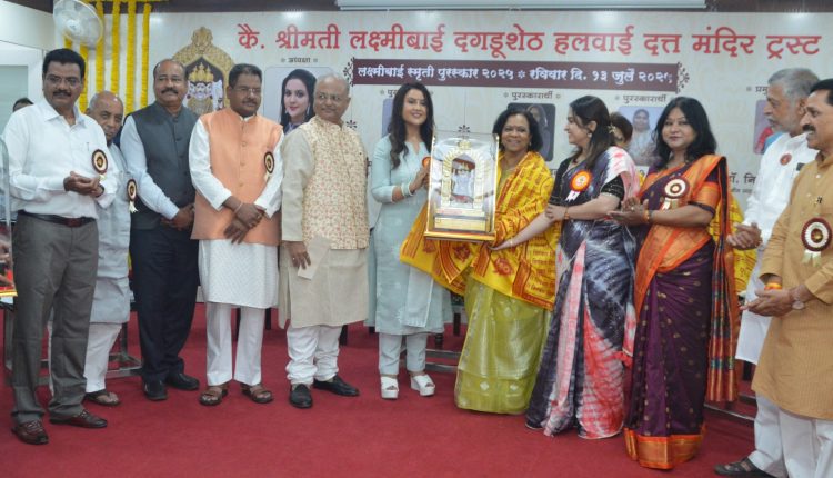 पुणे, १३ जुलै : पुण्यनगरीत दगडूशेठ हलवाई दत्तमंदिर ट्रस्टच्या १२८ व्या वर्धापनदिनानिमित्त आयोजित “लक्ष्मीबाई स्मृती पुरस्कार” सोहळा म्हणजे एकाच वेळी अध्यात्मिक परंपरेचा गौरव, सामाजिक सेवाकार्याची पावती आणि परिवर्तनशील स्त्रीशक्तीच्या योगदानाला दिलेली मानवंदना होता. मॉडर्न महाविद्यालयाच्या लता मंगेशकर सभागृहात झालेल्या या सोहळ्यात प्रमुख अतिथी म्हणून उपस्थित असलेल्या सामाजिक कार्यकर्त्या अमृता फडणवीस यांनी “पुण्यात अध्यात्म, राष्ट्रप्रेम आणि सुधारणा यांचा सुरेख संगम आहे. ही नगरीच प्रेरणादायी आहे,” असे सांगत भावनिक भाषणातून पुण्याच्या आत्म्याला स्पर्श केला.