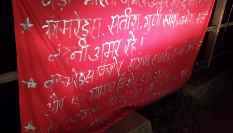 नक्षल्यांनी बॅनर बांधून पैड़ी चकमकीत ठार झालेल्या नक्षल्यांना वाहीली श्रद्धांजली