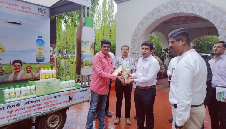 चंद्रपूर, 28 जून – केंद्र शासनामार्फत सन-2022 पासून नॅनो युरीया व यावर्षीपासून नॅनो डीएपी या विद्राव्य खतांचा वापर वाढविण्याकरीता जनजागृती अभियान राबविण्यात येत आहे. सदर अभियानाच्या पार्श्वभूमीवर चंद्रपूर जिल्ह्यातील शेतकऱ्यांचे उत्पन्न वाढावे याकरीता ईफको या सहकार क्षेत्रातील कंपनीद्वारे नॅनो युरीया व नॅनो डीएपी या विद्राव्य खतांचा वापर वाढावा, यासाठी रथाद्वारे प्रचार व प्रसिद्धी करण्यात येत आहे.