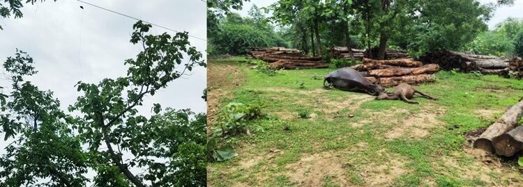 या घटनेत ठार झालेल्या म्हशी या मोदुमोडगु येथील मल्लेश गुरुडवार यांच्या मालकीच्या आहेत. काल दुपारच्या सुमारास नेहमीप्रमाणे गुरुडवार यांच्या मालकीच्या म्हशी जंगलात चरण्यासाठी गेल्या होत्या. मात्र संध्याकाळपर्यंत त्या परत न आल्याने त्यांनी म्हशीची शोधाशोध केली. मात्र म्हशींचा पत्ता लागला नाही.