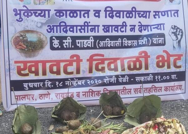 कोरोना-१९ या विषाणूच्या वाढत्या प्रादुर्भावामुळे दिनांक २४ मार्च-२०२० पासून देशभर लॉकडाऊन जाहिर केले होते. लॉकडाऊनमध्ये काम धंदे बंद झाले, अनेकांचे रोजगार गेले. त्यामुळे अगोदरच हलाखीचे जीवन जगत असलेल्या आदिवासींसमोर जीवन मरणाचा प्रश्न निर्माण झाला. म्हणून आदिवासींना दिलासा मिळावा या अपेक्षेने श्रमजीवी संघटनेने सतत पाठपुरावा, जनहित याचिका, हक्काग्रह आंदोलन, अन्न सत्याग्रह इत्यादी सर्व मार्ग वापरून लढा दिला, त्यानंतर शासनाने आदिवासीं बांधवांना दिलासा देण्यासाठी आर्थिक मदत व जीवनावश्यक वस्तू खावटी योजनेअंतर्गत देण्याचे जाहीर केले, मात्र आज लॉकडाऊन होऊन आठ महिने उलटून गेले तरी शासन कागदी घोडे नाचवत असल्याने आदिवासींची खावटी ही कागदावरच राहिली आहे.