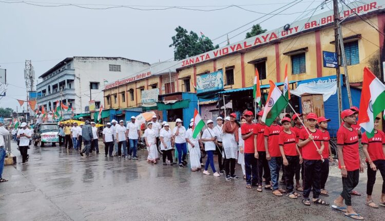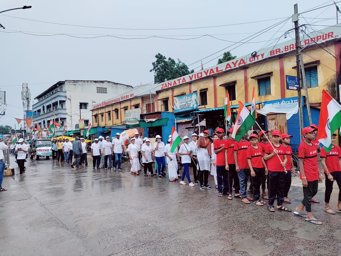 भर पावसात बल्लारपूर येथे तिरंगा रॅलीचे आयोजन