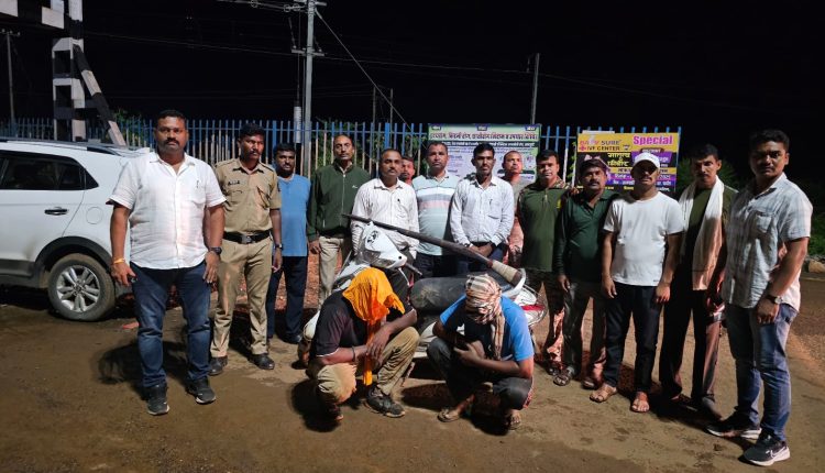 ताब्यात घेतलेले आरोपी — कुंदनसिंग शेरसिंग भुराणी (३१) आणि विजयसिंग सुरतसिंग भुराणी (२१), दोघेही पेठ वॉर्ड, ब्रम्हपुरी येथील रहिवासी आहेत. हे आरोपी मोपेडवरून शिकारीचा बेकायदेशीर माल वाहून नेत असताना पोलिसांच्या जाळ्यात अडकले.