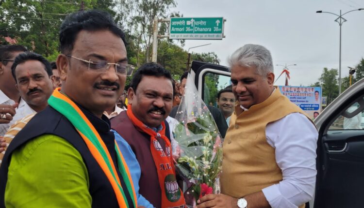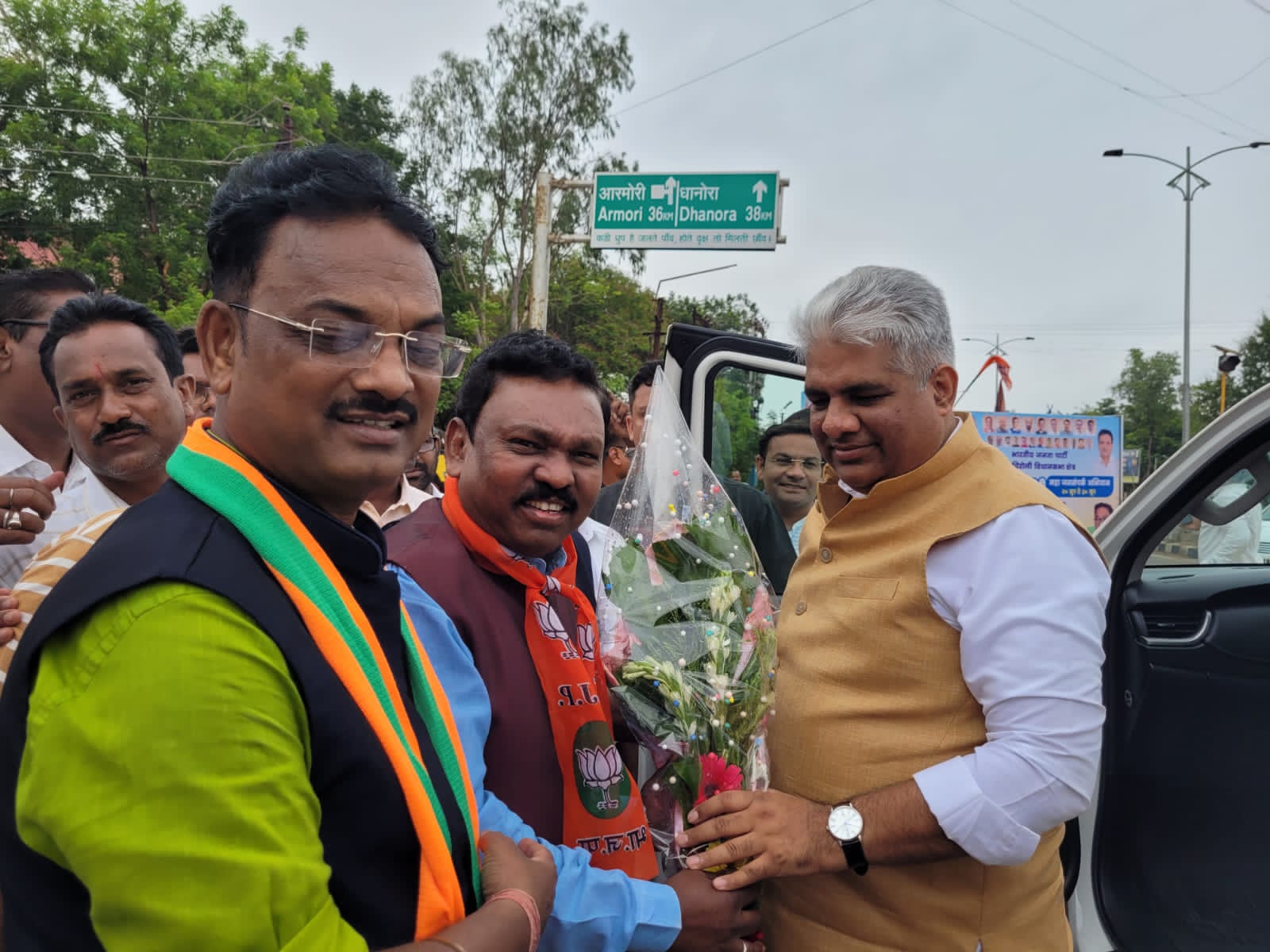 केंद्रीय मंत्री भुपेंद्रजी यादव यांचे गडचिरोली येथे आगमना निमित्याने खासदार अशोकजी नेते यांनी जल्लोषात स्वागत केले.