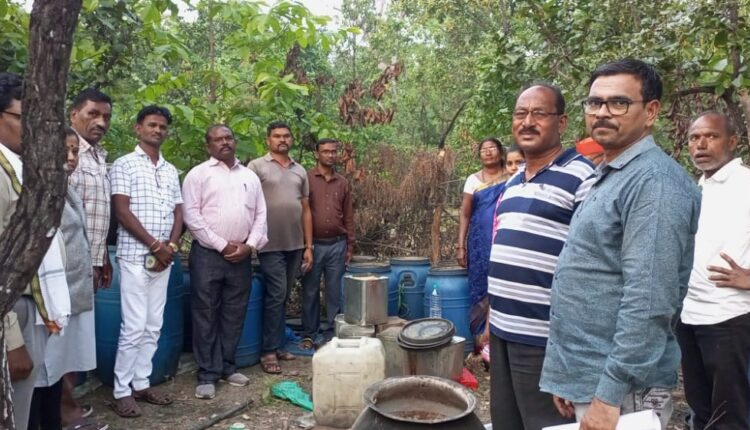 ही कारवाई पोलिस उपनिरीक्षक दिलीप मुनघाटे, हवालदार राजू उराडे व वनविभागाचे क्षेत्रसहायक एस. व्ही. नारनवरे वनरक्षक आर. पी. नन्नावरे, वनरक्षक व्ही. व्ही. राऊत यांनी केली. यावेळी गावसंघटनेचे अध्यक्ष हरबाजी घोडमारे, तंमुस अध्यक्ष विजय मोहुर्ले, उपसरपंच गावतुरे, पोलिस पाटील कोमल धुर्वे, अरुण कुमरे, वामन भांडारकर, रमेश मडावी, श्रावण धुर्वे, मुक्तिपथ तालुका संघटक विनोद कोहपरे, स्वीटी आकरे, दीक्षा तेलकापल्लीवार यांच्यासह गाव संघटनेचे सदस्य उपस्थित होते.