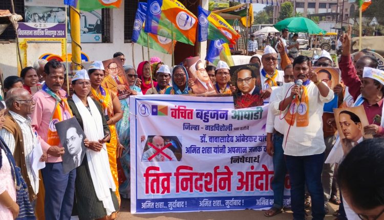 गडचिरोली: देशाचे गृह मंत्री अमित शहा यांनी राज्यसभेत डॉ बाबासाहेब आंबेडकर यांच्या संदर्भात अपमानजनक वक्तव्य केल्यामूळे त्यांच्या ‘त्या’ वक्तव्याचा निषेध करत गृहमंत्री पदाचा राजीनामा पंतप्रधान मोदींनी घ्यावा यासाठी वंचित बहुजन आघाडीच्या वतिनेे ईंदिरा गांधी चौकात तिव्र निदर्शने आंदोलन करण्यात आले.