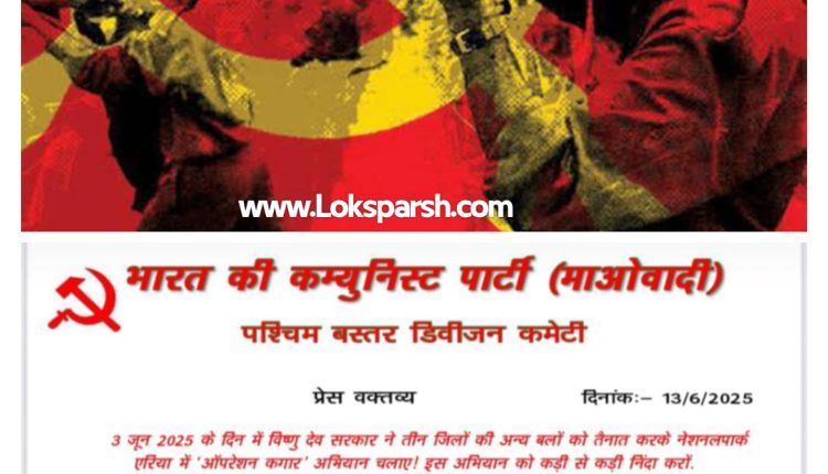 पत्रकातून सरकारच्या फासीवादी धोरणांची पोलखोल – पश्चिम बस्तर माओवादी कमिटीचा आरोप..