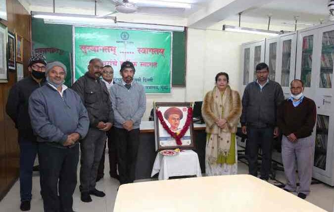 नवी दिल्ली, दि. ६ जानेवारी : महाराष्ट्र परिचय केंद्रात मराठी पत्रकार दिन साजरा करण्यात आला. जनसंपर्क अधिकारी तथा प्र.उपसंचालक अमरज्योत कौर अरोरा यांनी मराठी वृत्तपत्रसृष्टीचे जनक आचार्य बाळशास्त्री जांभेकर यांच्या प्रतिमेस पुष्पहार अर्पण करून अभिवादन केले. यावेळी उपस्थित कर्मचाऱ्यांनीही आचार्य जांभेकरांच्या प्रतिमेस पुष्प अर्पण करून अभिवादन केले.