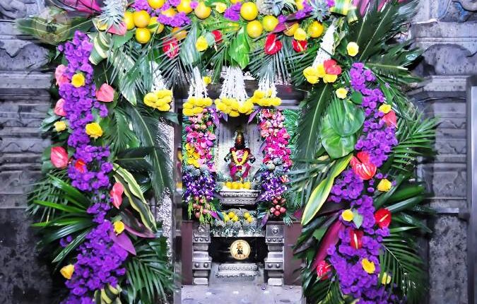 पंढरपूर, दि. ०१ जानेवारी : नवीन वर्षारंभाच्या २०२२ निमित्ताने श्री विठ्ठल- रुक्मिणी मंदिरात विविध रंगांची तब्बल १५०० किलो फुले आणि ७०० किलो फळे वापरून मनमोहक आरास करण्यात आली आहे. फुलांची आरास करण्यासाठी प्रदीप प्रकाश ठाकूर पाटील (आळंदी, पुणे) यांनी फुले उपलब्ध करून दिली.