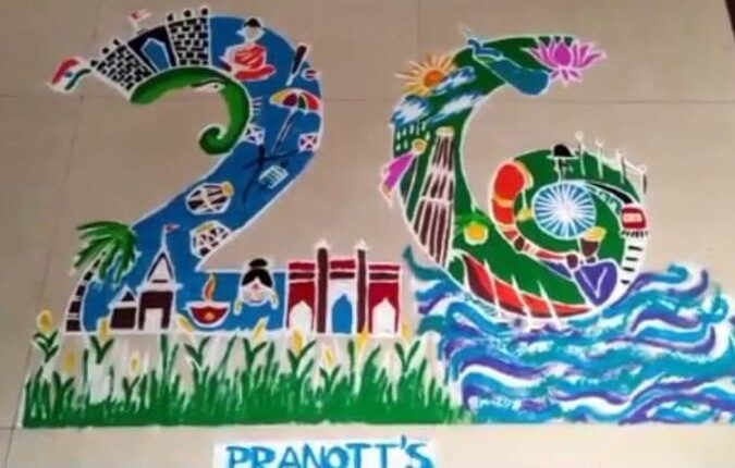 प्रजासत्ताक दिनानिमित्त एका युवतीने भारतातील २६ वैशिष्ट्यांची साकारली रांगोळी….