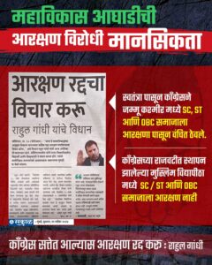 आरक्षण संपवणारी योजना अमेरिकेतून उघड…राहुल गांधी याचं वक्तव्य निषेधार्ह…देवेंद्र फडणवीस
