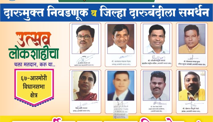 दारूमुक्त निवडणूक व जिल्हा दारूबंदीला समर्थन आरमोरी मतदार संघातील सर्व उमेदवारांनी दिला वचननामा