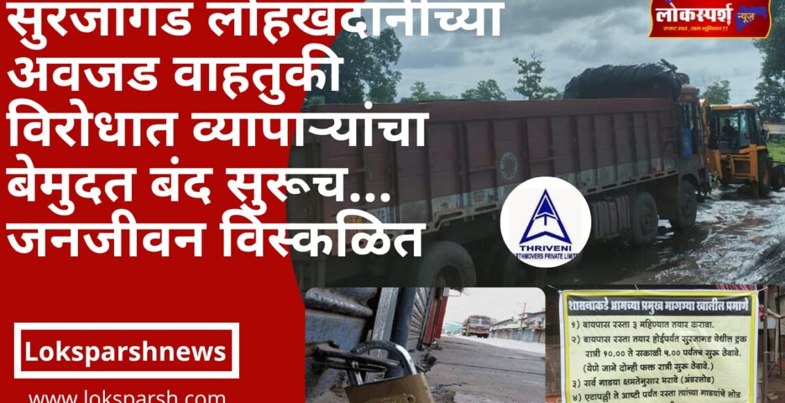 सुरजागड लोहखदानीच्या अवजड वाहतुकी विरोधात व्यापाऱ्यांचा बेमुदत बंद सुरूच…