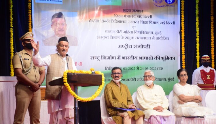 श्रीमती नाथीबाई दामोदर ठाकरसी महिला विद्यापीठ व केंद्रीय हिंदी निदेशलायातर्फे आयोजित ‘राष्ट्र निर्माण कार्यात भारतीय भाषांची भूमिका’ या विषयावरील ३-दिवसांच्या राष्ट्रीय चर्चासत्राचे उदघाटन राज्यपाल कोश्यारी यांच्या प्रमुख उपस्थितीत मंगळवारी (२२ मार्च) महिला विद्यापीठाच्या पाटकर सभागृहात झाले, त्यावेळी राज्यपाल बोलत होते.
