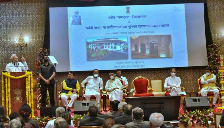राजभवन येथे येथे ‘क्रांती गाथा’ भूमिगत दालन व राज्यपालांच्या ‘जलभूषण’ निवासस्थानाच्या उदघाटन पर कार्यक्रमानंतर प्रधानमंत्री नरेंद्र मोदी बोलत होते. यावेळी राज्यपाल भगतसिंह कोश्यारी, मुख्यमंत्री उद्धव ठाकरे, केंद्रीय सामाजिक न्याय राज्यमंत्री रामदास आठवले, उपमुख्यमंत्री अजित पवार, कार्यक्रमास सार्वजनिक बांधकाम मंत्री अशोक चव्हाण, जलसंपदा मंत्री जयंत पाटील, राजशिष्टाचार मंत्री आदित्य ठाकरे, राज्यमंत्री कु.आदिती तटकरे, विरोधी पक्ष नेते देवेंद्र फडणवीस यांच्यासह राज्य मंत्रिमंडळातील सदस्य इतर मान्यवर उपस्थित होते.