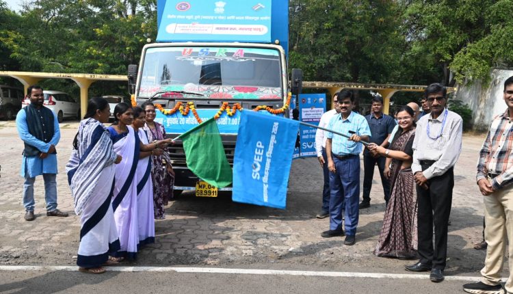 विधानसभा सार्वत्रिक निवडणूकीत मतदानाची टक्केवारी वाढविण्यासाठी मल्टिमिडीया व्हॅन द्वारे जिल्ह्यातील तीनही विधानसभा मतदार संघात मतदार जनजागृती अभियान राबविण्यात येत आहे. या व्हॅनला जिल्हाधिकारी कार्यालयात आज हिरवी झेंडी दाखवून मार्गस्थ करण्यात आले. यावेळी जिल्हाधिकारी श्री दैने बोलत होते. भारत निवडणूक आयोग, मुख्य निवडणूक अधिकारी कार्यालय, माहिती व प्रसारण मंत्रालय यांच्यावतीने केंद्रीय संचार ब्यूरो तसेच जिल्हा निवडणूक अधिकारी कार्यालय, सिस्टमॅटिक व्होटरर्स एज्युकेशन ॲण्ड इलेक्ट्रोरल पार्टीसिपेशन (SVEEP) आणि जिल्हा माहिती कार्यालय यांच्यामार्फत मल्टिमिडीया व्हॅन द्वारे मतदार जनजागृती अभियानाला सुरूवात करण्यात आली.