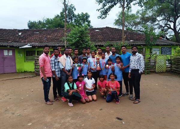 आलापल्ली येथील राणी दुर्गावती हायस्कूलच्या प्रांगणात खेळाडूंचा सत्कार