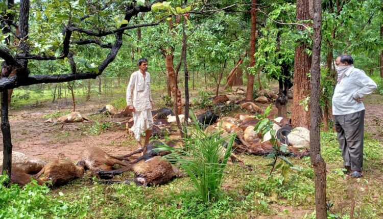 वीज पडून १०० ते ११० शेळ्या व मेंढ्या जागीच ठार,पांच ते सहा लाखांचे नुकसान झाल्याचे प्राथमिक अंदाज