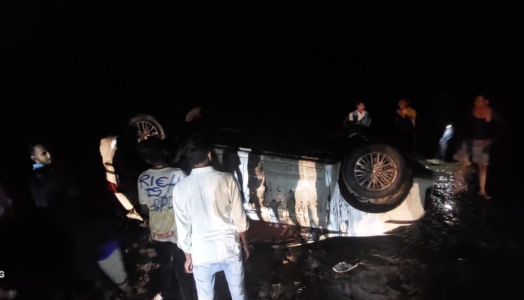 या अपघातात कार मधील पाच तरुण प्रवासी कीरकोळ जखमी झाले आहेत. यावेळी कारमधील तीन तरुणांनी घटनास्थळावरून पोबारा केला तर कार मध्ये अडकलेल्या दोन तरुणांना स्थानिक नागरिकांनी तात्काळ घटनास्थळी जाऊन कारमधून बाहेर काढले आणि कार सुस्थितीत केली.