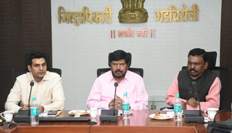 गडचिरोली, दि.१७ : देशातील ११२ आकांक्षित जिल्हयांमधे गडचिरोली जिल्हयाचा समावेश आहे. या जिल्हयात प्रशासन नाविण्यपूर्ण योजना राबवून गरजूंसाठी विकासात्मक कामे पार पाडत आहे असे प्रतिपादन केंद्रीय सामाजिक न्याय व सक्षमीकरण राज्यमंत्री रामदास आठवले यांनी गडचिरोली येथे केले. ते वेगवेगळया राज्यांमधे आकांक्षित जिल्हयांच्या दौऱ्यावर आहेत.त्याची सुरूवात त्यांनी गडचिरोली येथून केली.
