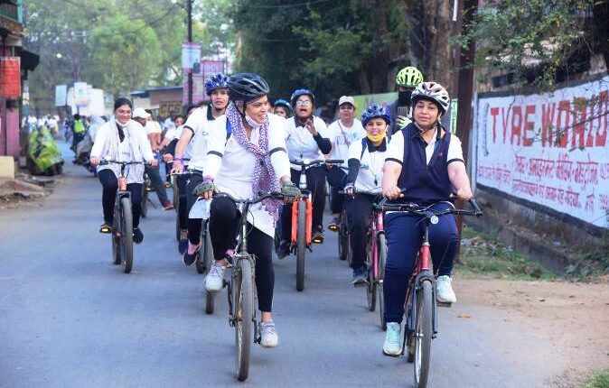 जिल्हाधिकारी नयना गुंडे यांनी सायकल चालवत दिला पर्यावरण बचाव सेहत बनाव चा दिला संदेश