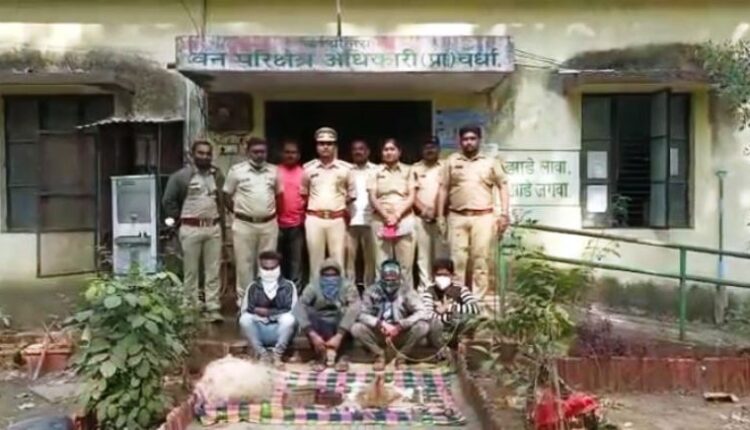 सदर माहिती वनपरिक्षेत्र अधिकारी रुपेश खेडकर यांना मिळताच त्यांनी वनपथकासह शुक्रवारी रात्री १०.३० वाजताच्या सुमारास देवळी तालुक्यातील चोंडी शिवार गाठून काळविटाच्या मांसाची मेजवानी करीत असलेल्या विश्वेश्वर हरिभाऊ सोनटक्के, नागसिंग संजय वाघमारे, रंजीत जगदीश टामठे व सुरेंद्र लक्ष्मण दांढेकर सर्व रा. चोंडी यांना ताब्यात घेत अटक केली.