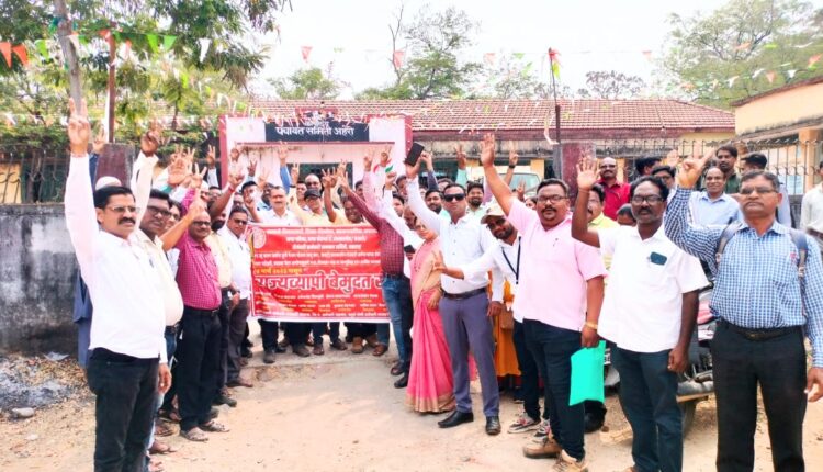 गडचिरोली 14 मार्च : 1 एक नोव्हेंबर 2005 पासून बंद करण्यात आलेली जुनी पेन्शन योजना सुरू करावी या प्रमुख मागणीसह कंत्राटी अंशकालीन रोजंदारी कर्मचाऱ्यांच्या सेवा नियमित करा, रिक्त पदे त्वरित भरा ,अनुकंप तत्त्वावरील नियुक्ती करा, चतुर्थ श्रेणी व वाहन चालक पदे भरण्यासंदर्भात लावण्यात आलेली बंदी त्वरित हटवा, शिक्षक , नगरपालिका कर्मचाऱ्यांच्या प्रलंबित मागण्याकडे लक्ष वेधण्यासाठी महाराष्ट्र राज्य सरकारी कर्मचारी मध्यवर्ती संघटना, महाराष्ट्र राज्य जिल्हा परिषद कर्मचारी युनियन आणि महाराष्ट्र राज्य गट चतुर्थश्रेणी कर्मचारी मध्यवर्ती महासंघाच्या संयुक्त विद्यमाने आज 14 मार्चपासून राज्यव्यापी बेमुदत संप पुकारण्यात आला असून यामध्ये कर्मचाऱ्यांचा उत्स्फुर्त प्रतिसाद दिसून येत आहे.