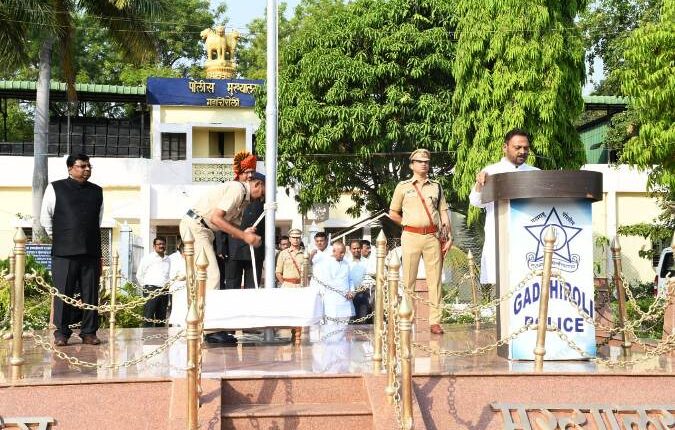 यावेळी त्यांनी महाराष्ट्र निर्मितीमधील हुतात्म्यांना आदरांजली वाहून गडचिरोली जिल्ह्यातील नागरिकांना महाराष्ट्रराज्य दिनाच्या व कामगार दिनाच्या शुभेच्छा दिल्या. यावेळी डॉ.दिलीप पांढरपट्टे, सचिव मृद व जलसंधारण विभाग महाराष्ट्र राज्य, प्रभारी जिल्हाधिकारी धनाजी पाटील, पोलीस अधिक्षक अंकित गोयल, अप्पर पोलीस अधीक्षक समीर शेख, सोमय मुंडे, अनुज तरे, निवासी उपजिल्हाधिकारी समाधान शेंडगे उपस्थित होते.