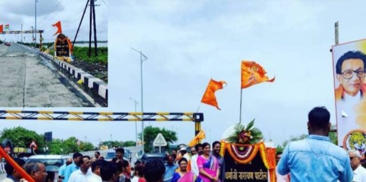 वसई, दि. १४ ऑगस्ट : वसईच्या नायगाव पूर्व आणि पश्चिमेला जोडणाऱ्या नव्या उड्डाणपुलाचे शिवसेनेच्या वतीने स्व.धर्माजी पाटील असे नामकरण करण्यात आले. या पूलाचे कुठलेही अधिकृत नाव ठरले नसताना, कोणत्याही प्रकारची शासकीय परवानगी नसताना एमएमआरडीए व पोलीस प्रशासनाने हिरवा कंदील दाखवला नसतांना हा नामांतराचा कार्यक्रम पार पडला. यामुळे आता नवीन वादाला तोंड फुटले आहे.