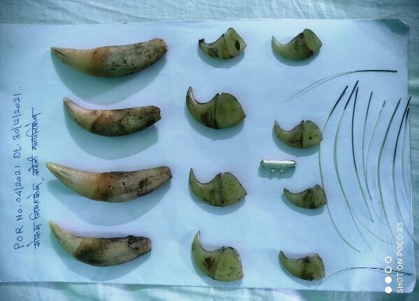 गडचिरोली, दि. १ जानेवारी २०२२ : आलापल्ली वनविभागात येणाऱ्या अहेरी परिक्षेत्रातील कक्ष ६१५ मध्ये दि. ३० डिसेंबर २०२१ रोजी वाघ या वन्यप्राण्याची शिकार करुन त्याचे शिर व वाघनखे काढुन उर्वरीत मृत वाघ शव ओढयात रेती मध्ये पुरन्यात आले होते. या प्रकरणी तीन आरोपींना अटक केली असून त्यांचेकडुन वाघनखे ८ नग, वाघदात ४ नग, वाघ मिशी १० नग व वनगुन्हयातील अन्य मुद्देमाल ताब्यात घेण्यात आला आहे.