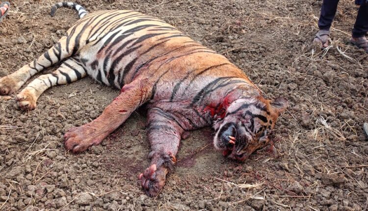 शिकार खाण्यासाठी दोन वाघात झुंज;एका वाघाचा मृत्यु तर एक गंभीर