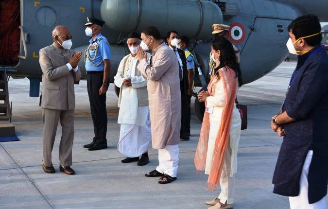 पुणे डेस्क, दि. ६ डिसेंबर : भारताचे राष्ट्रपती राम नाथ कोविंद यांचे दोन दिवसाच्या पुणे दौऱ्यासाठी पुणे विमानतळावर आज भारतीय वायूसेनेच्या हेलिकॉप्टरने आगमन झाले.