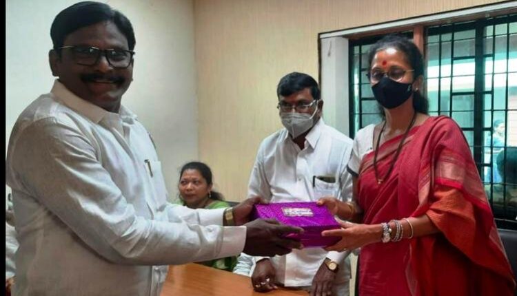 राष्ट्रवादी काँग्रेसच्या शहराध्यक्षांकडून, खासदार सुप्रिया सुळे यांचे विविध पुस्तके भेट देऊन स्वागत